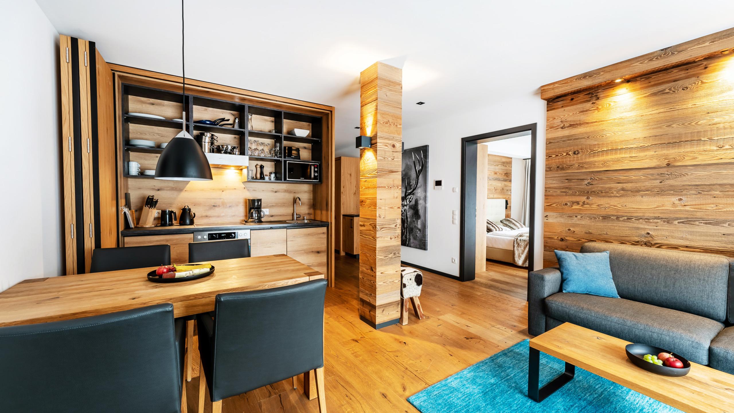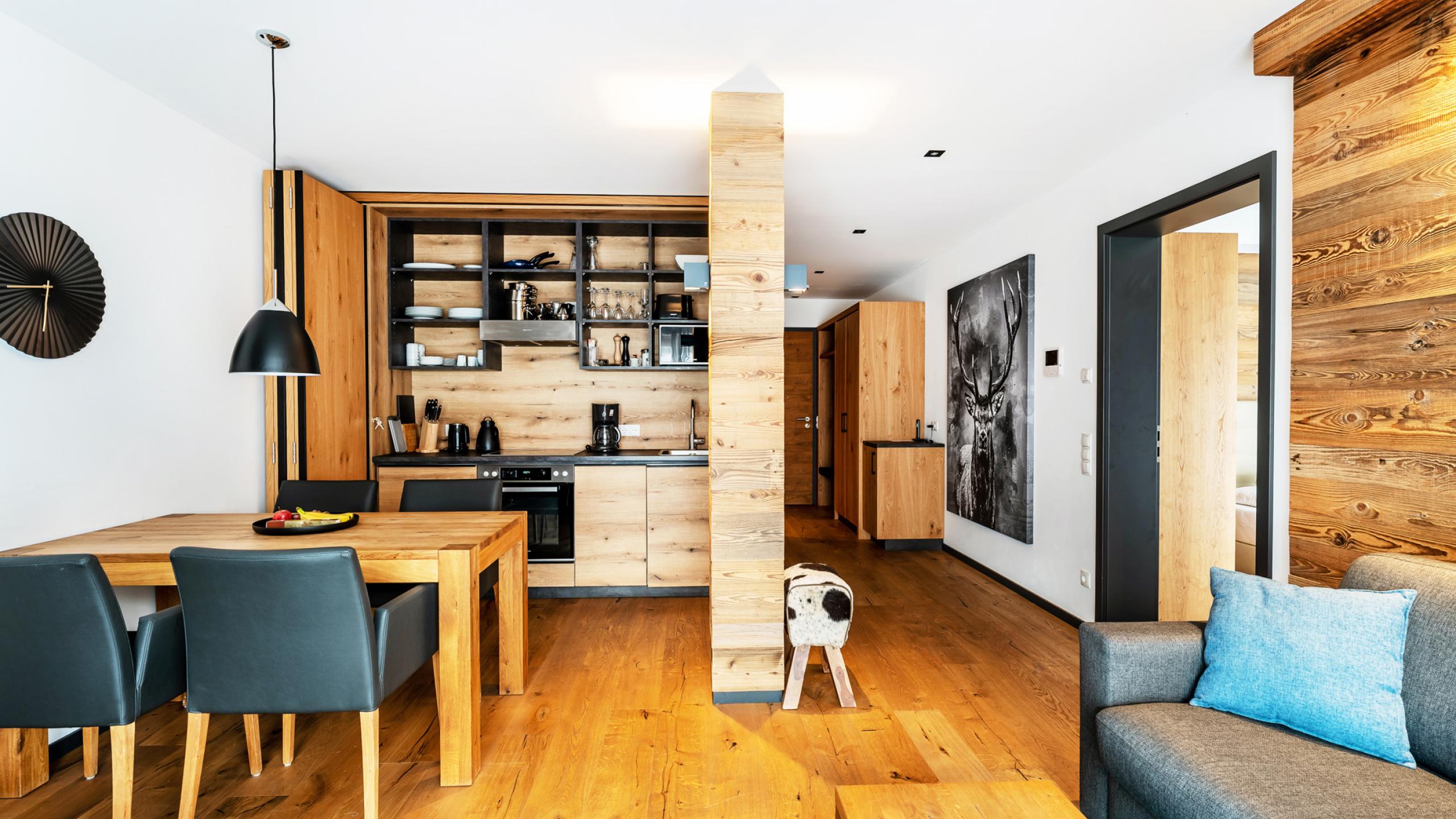 The apartment “Murmeltier II” is furnished in modern country house style and offers approx. 55 sqm space for 2 – 4 persons. The apartment is part of the residential complex built in 2020 and has been furnished with great attention to detail. Old wood and natural materials give this apartment its unique charm.