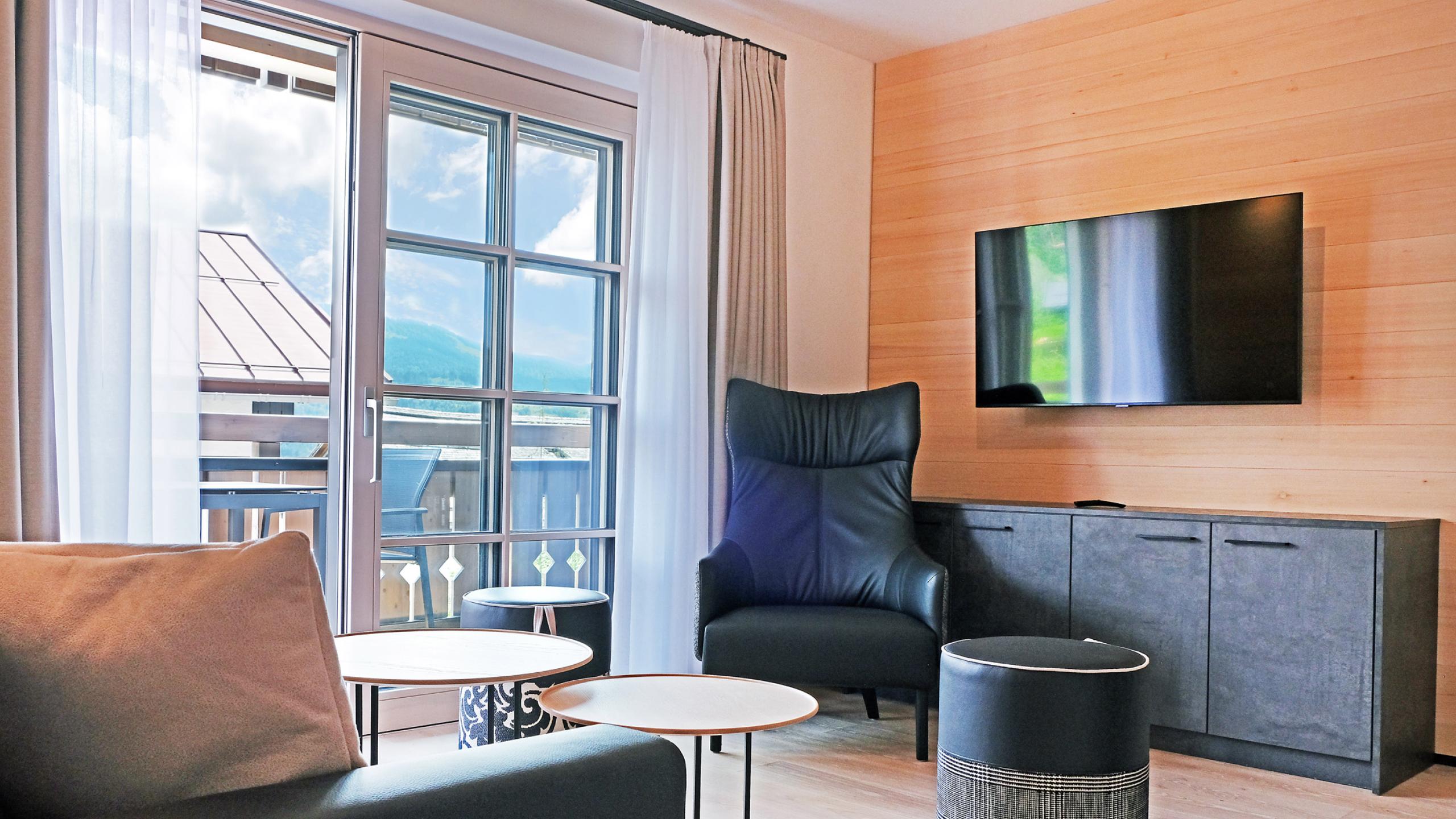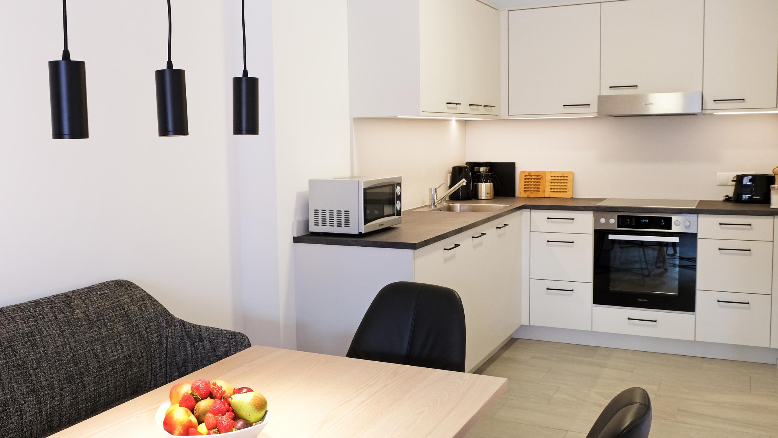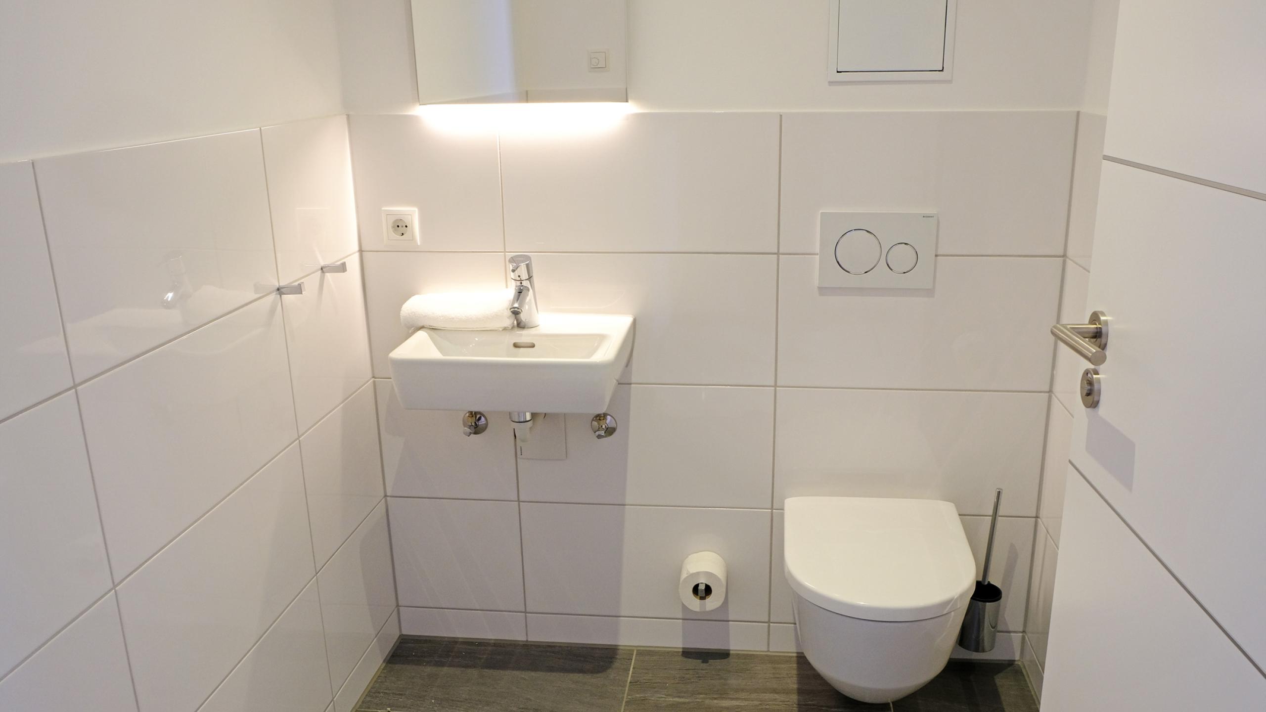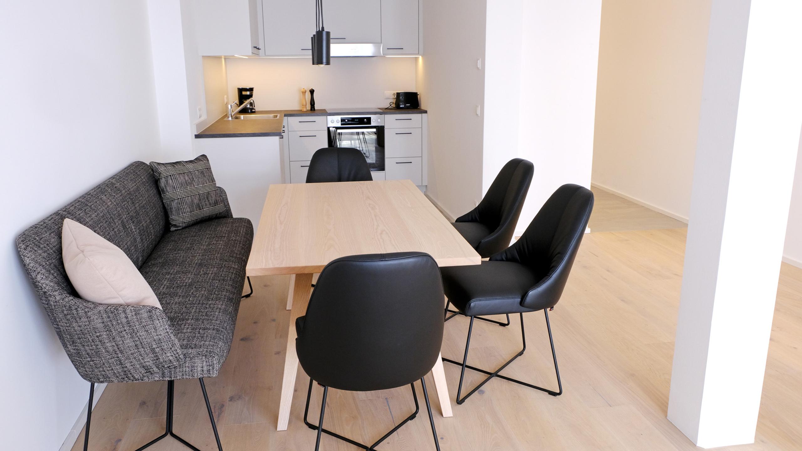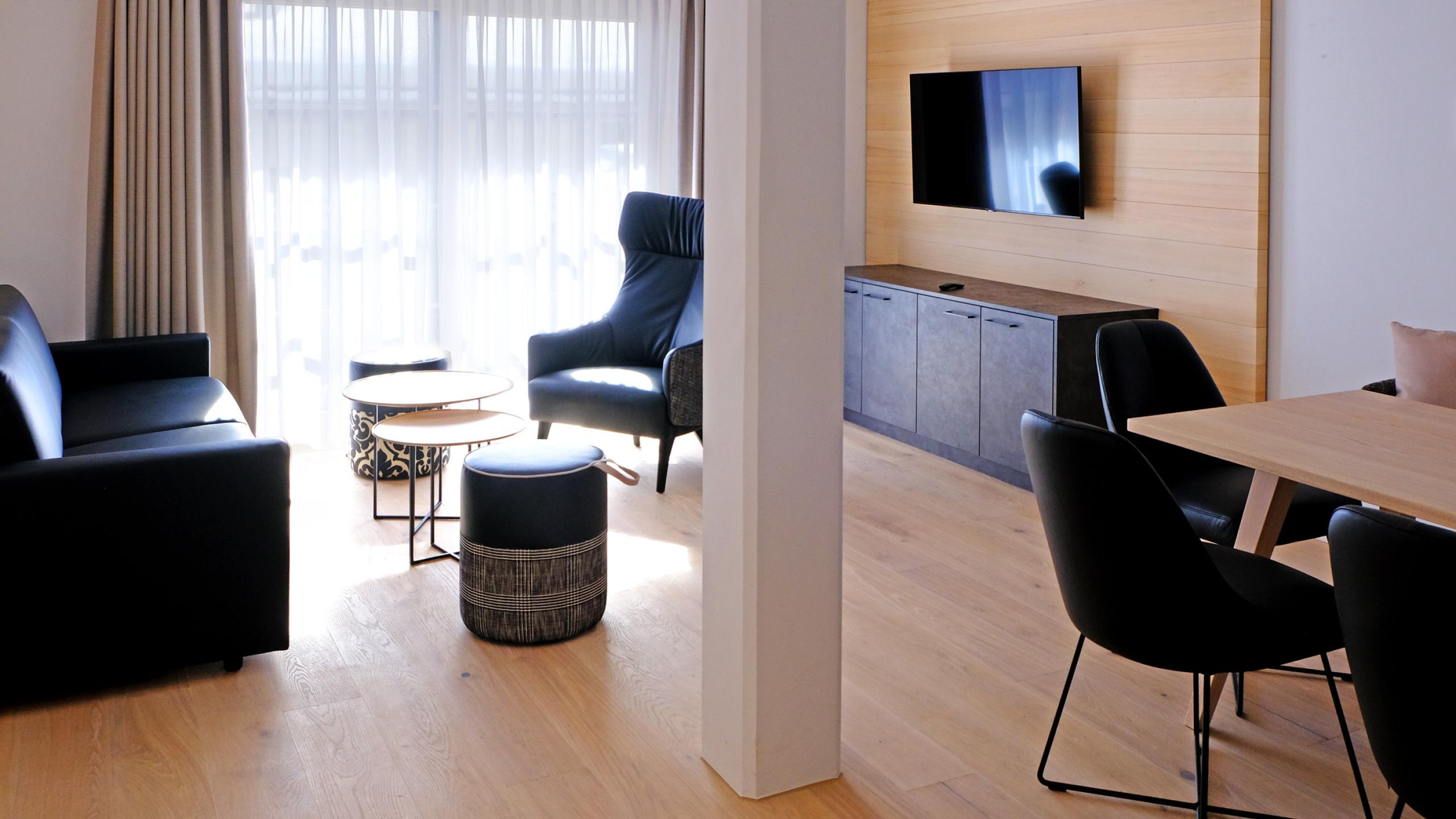 The apartment “Steinbock” has three rooms (95m2), 2 spacious balconies, a spacious daylight bathroom with walk-in shower and a separate toilet.