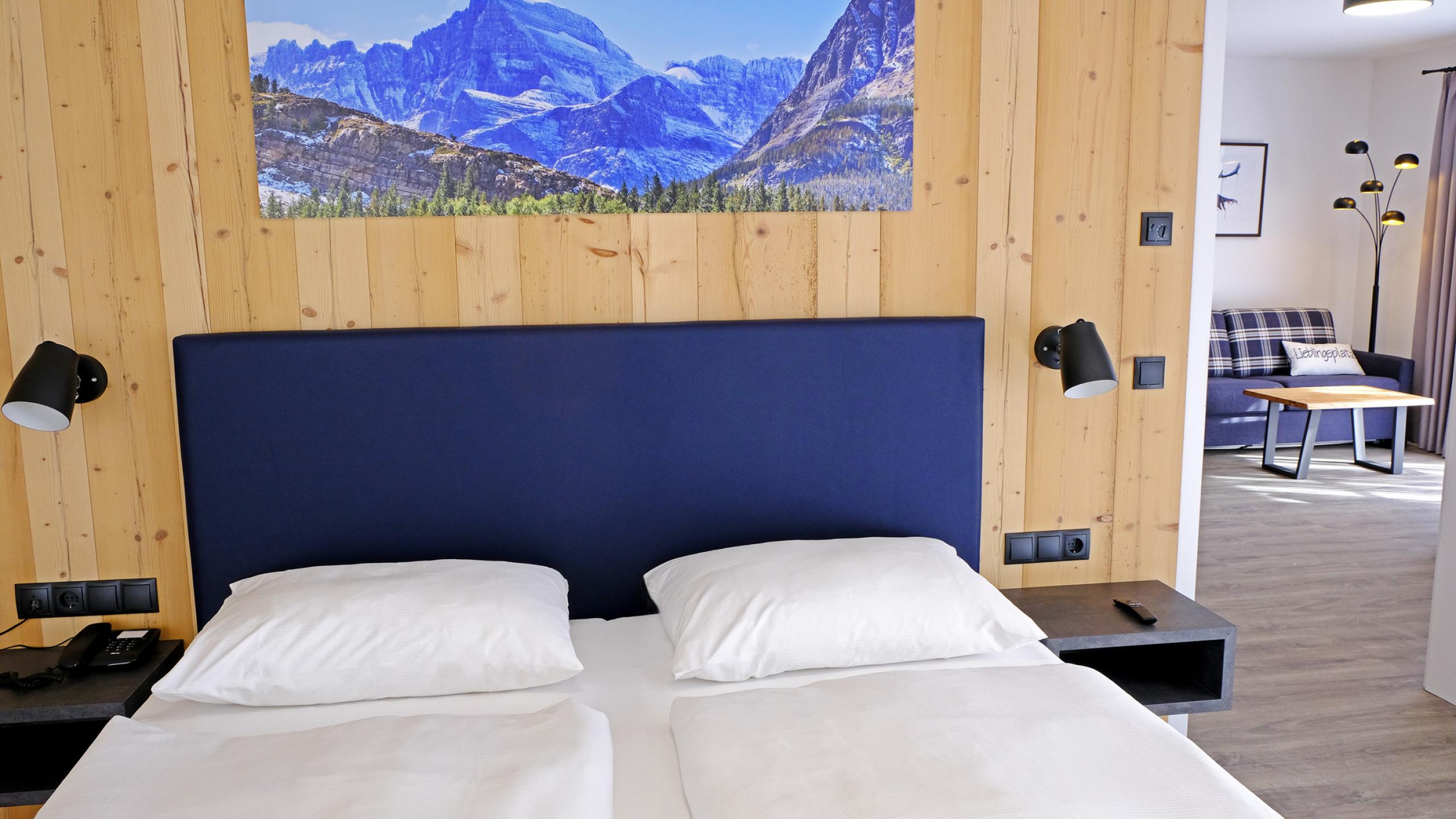 Diese 3-Zimmerwohnung wurde 2020 für 2 bis 6 Personen gebaut und von einem ortsansässigen Schreiner mit Altholz vertäfelt und im Allgäuerischen Landhausstil eingerichtet. Durch den großzügigen Eingangsbereich gelangen Sie in ein separates Schlafzimmer mit Boxspringbett 180 x 200 cm, Safe, Minibar, Flatscreen TV, Telefon am Bett, W-Lan und großes Duschbad mit Erlebnisdusche.