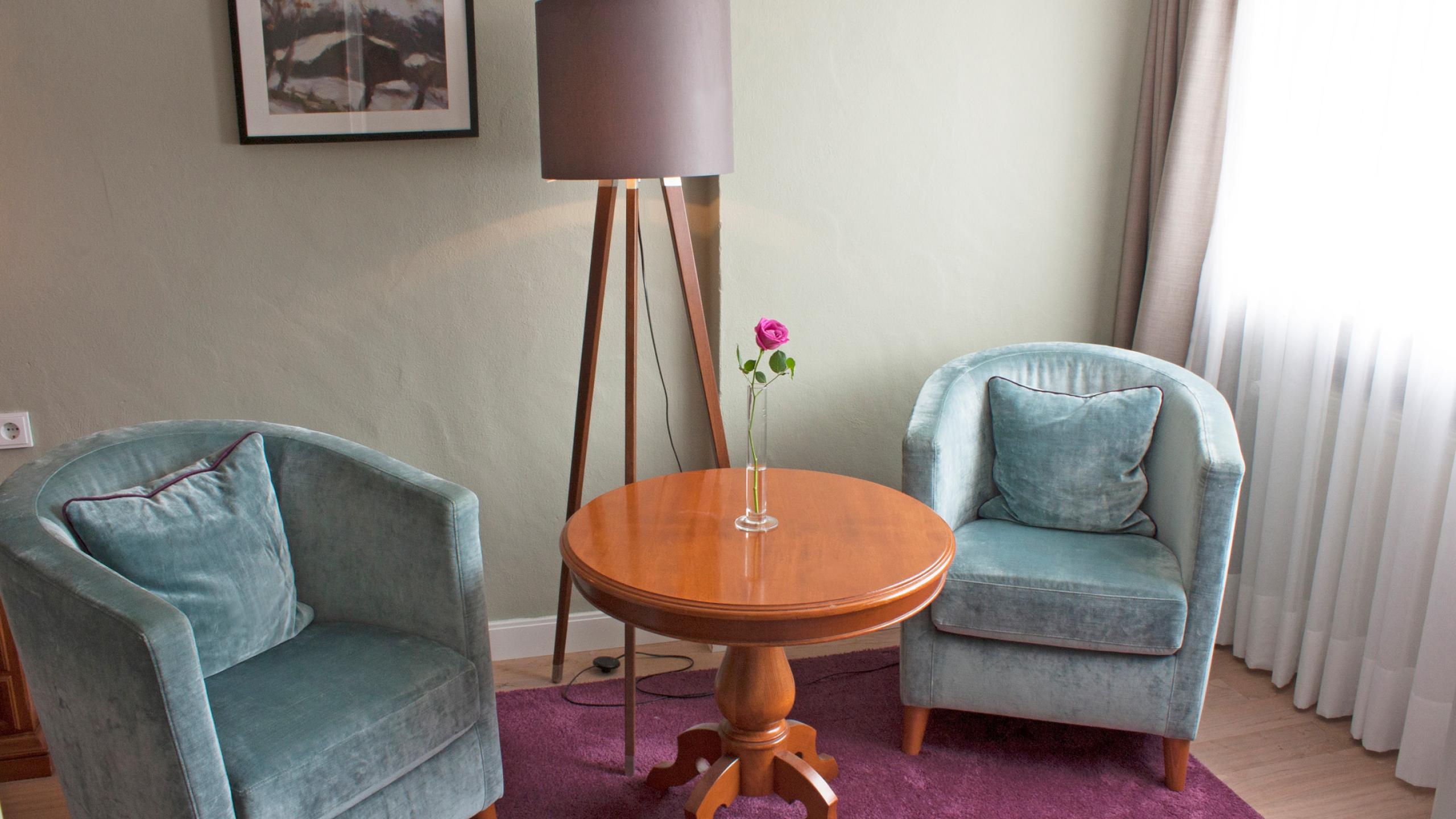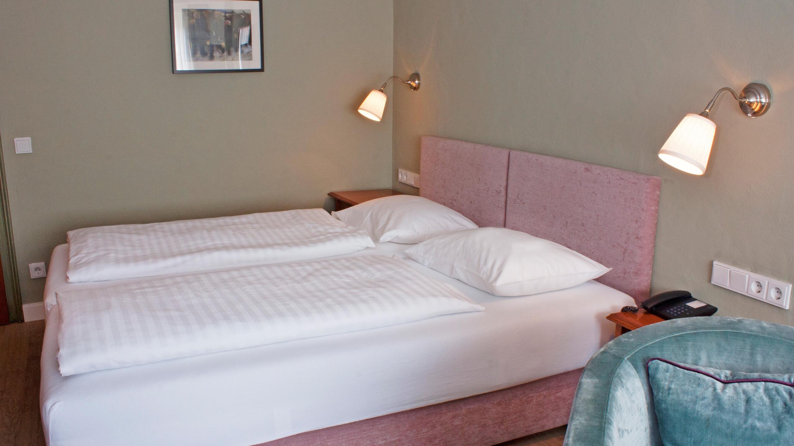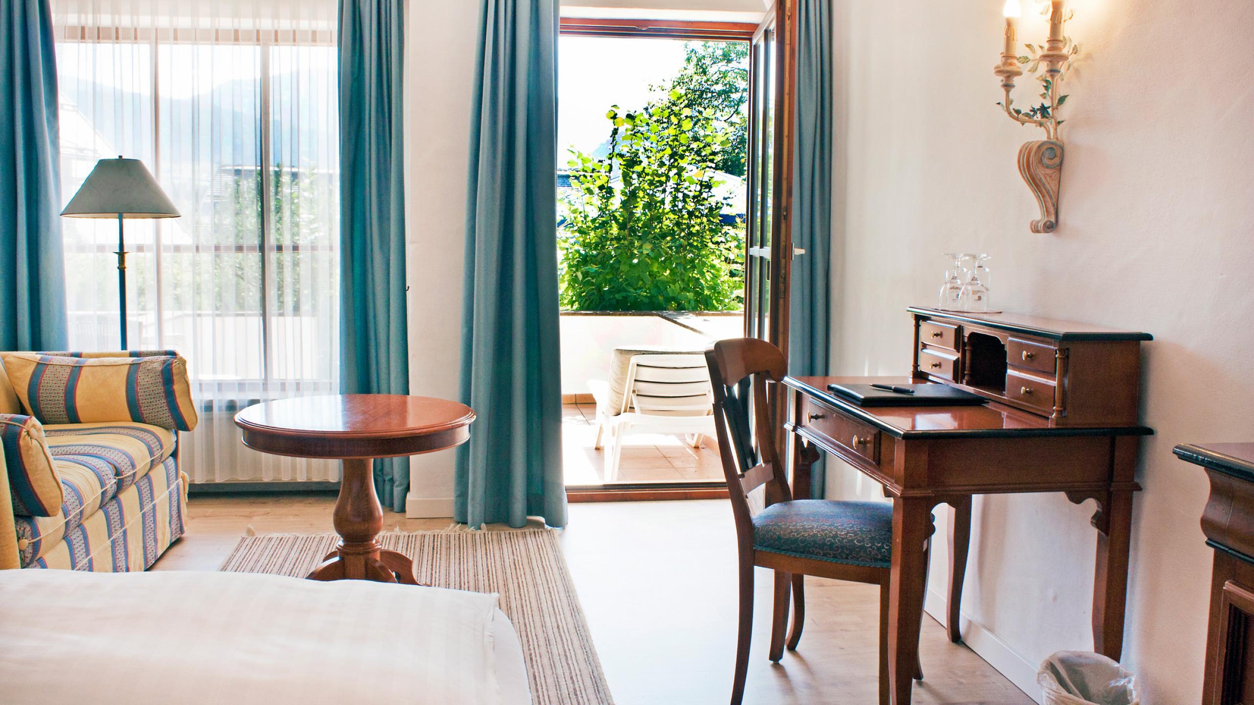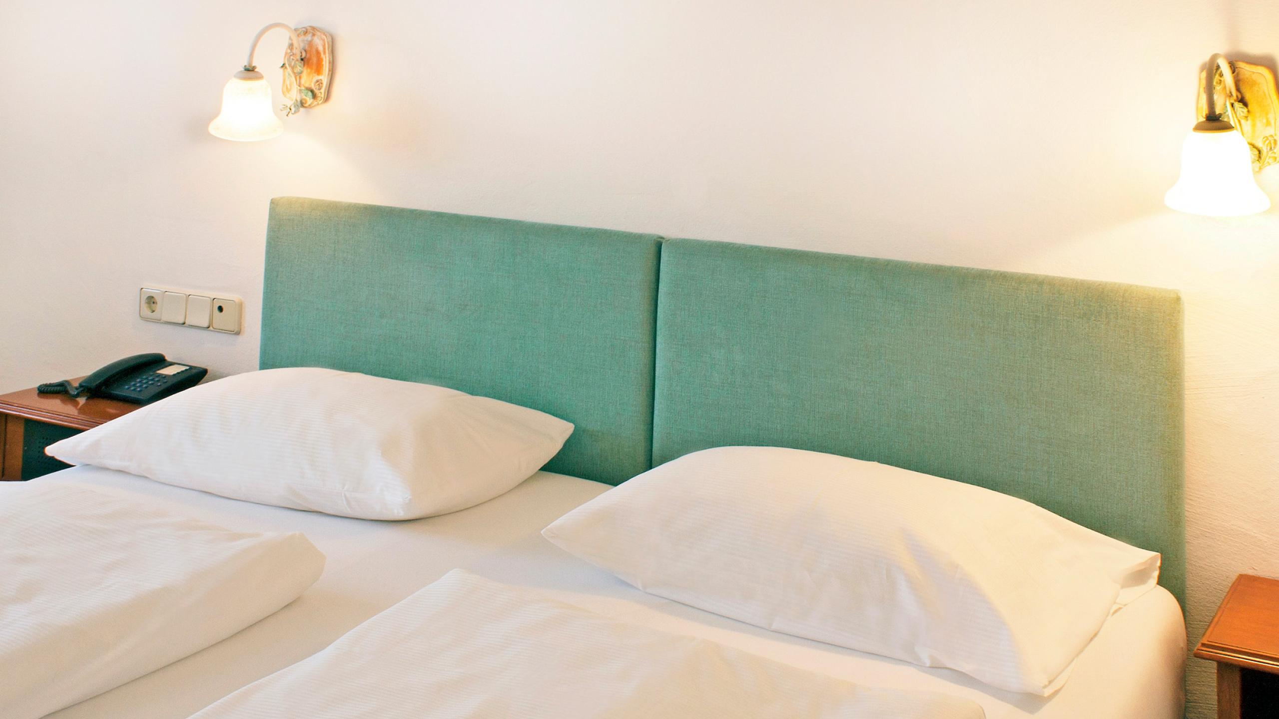 Unsere Standard Doppelzimmer liegen im Haupthaus und verfügen über keinen Balkon.