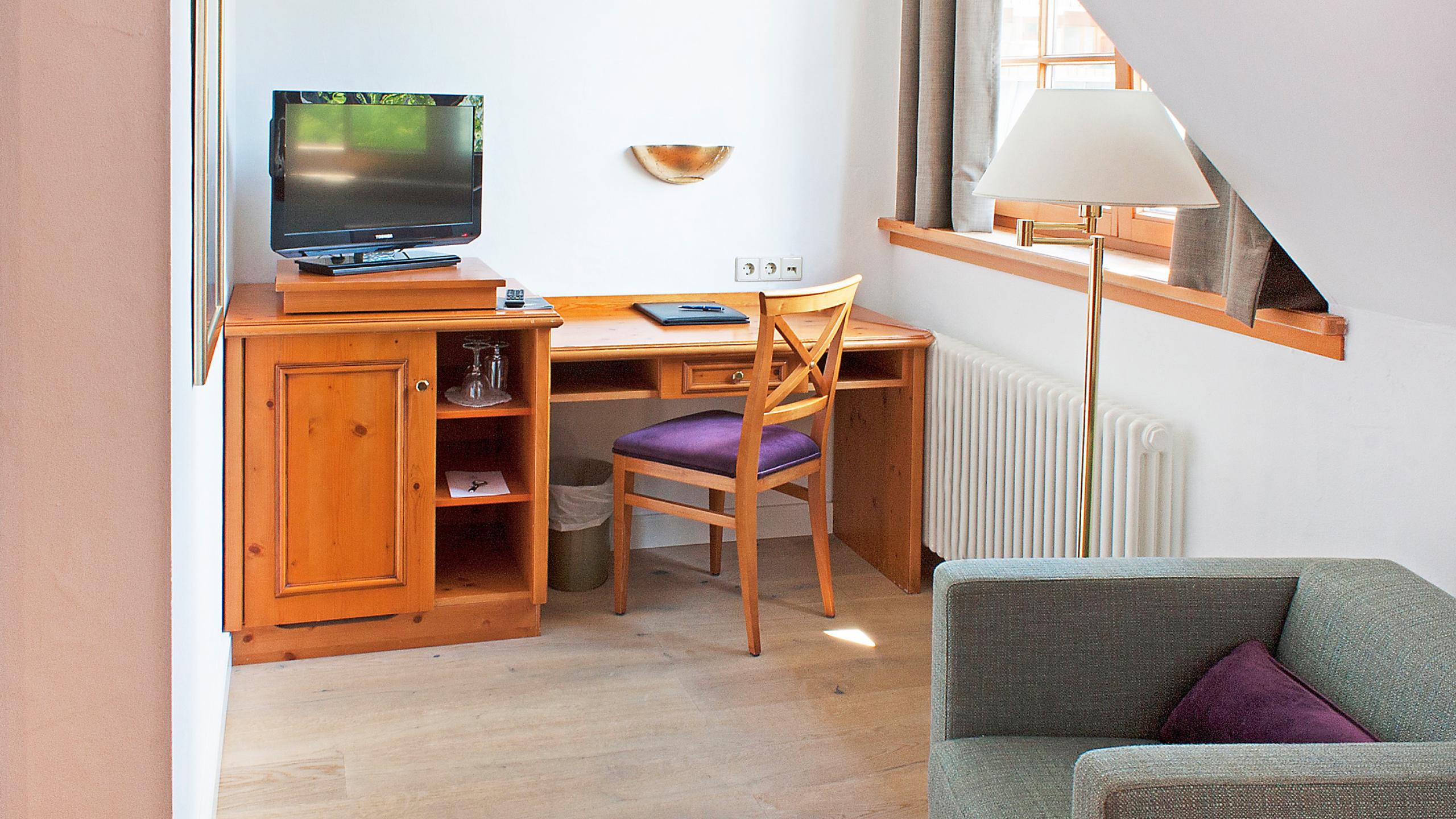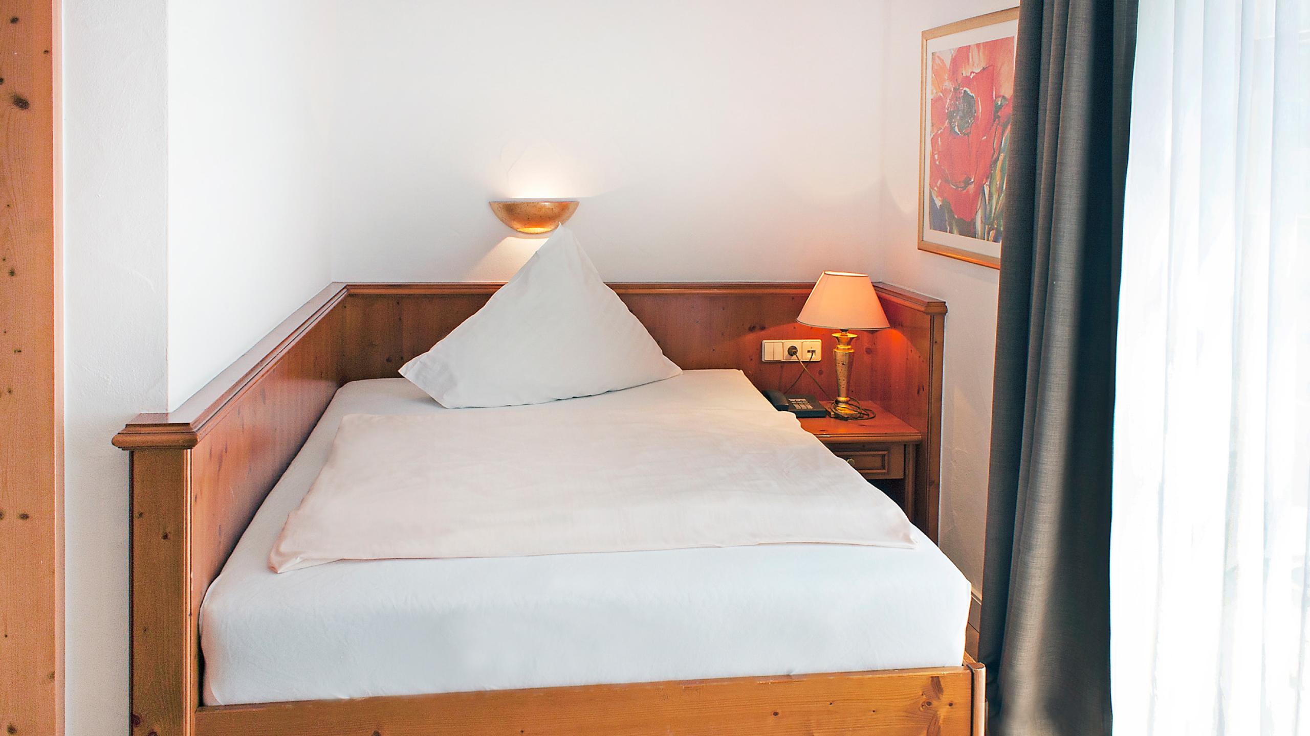 Diese Einzelzimmer sind im modern-klassischen Stil gehalten und mit 1,00 - 1,40 m breiten Einzelbetten ausgestattet. Sie befinden sich im Haupthaus oder im Haus Leopold (kurzer Weg durchs Freie zum Stammhaus). Sie sind mit Holzboden ausgestattet und eine kleine Sitzecke mit gemütlichem Sessel lädt zum Verweilen ein.