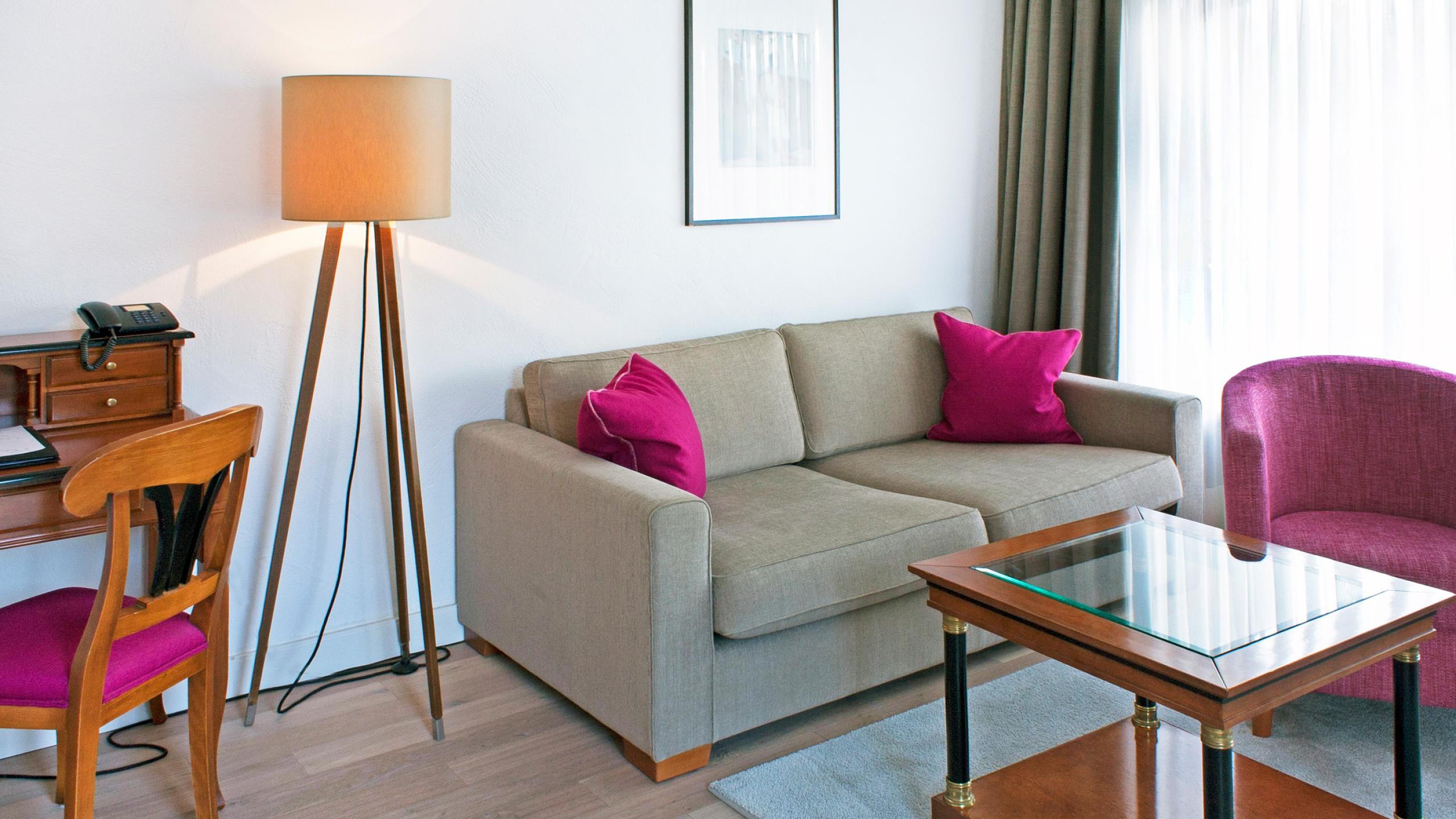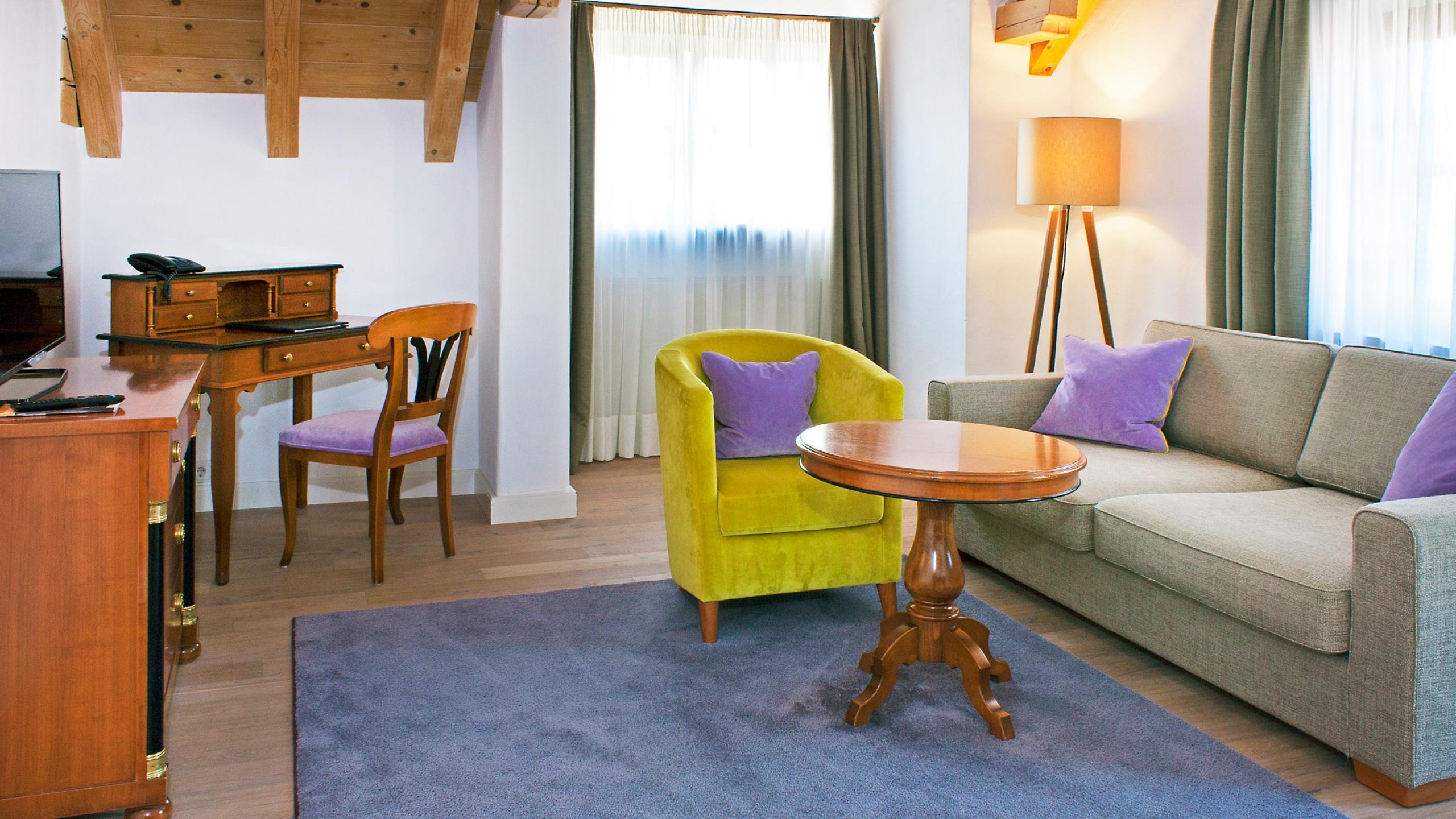 Unsere Suiten mit separatem Wohn- und Schlafzimmer wurden kürzlich vollständig modernisiert. Sie sind mit einem hellen Parkettboden ausgestattet und verfügen über ein großzügiges Wohnzimmer sowie ein separates Schlafzimmer mit geräumiger Ankleide.
